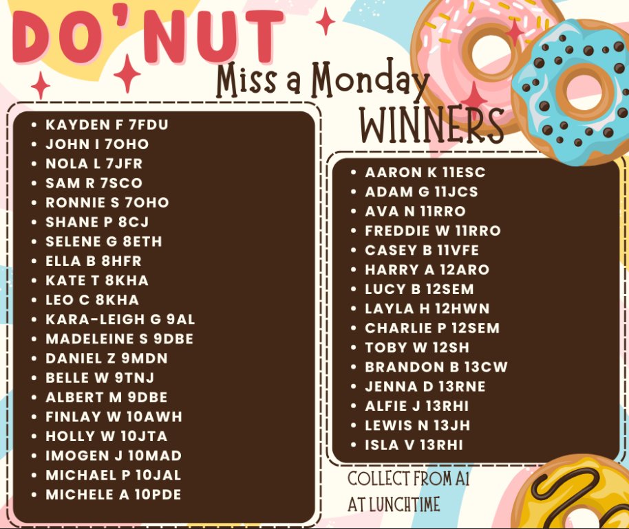Today's Sweet Treat winners #DoNutMissAmonday 🍩